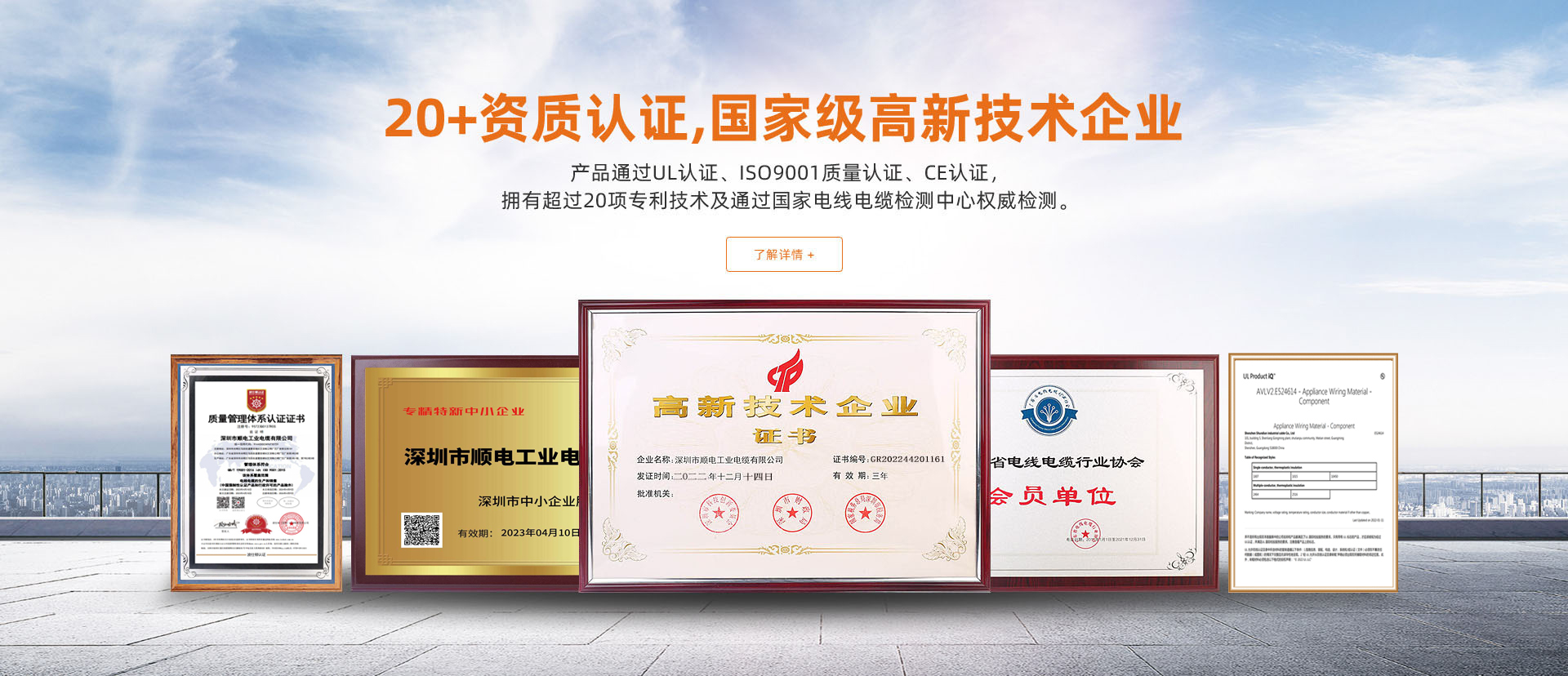 資質(zhì)認(rèn)證齊全,國(guó)家高新技術(shù)企業(yè),15項(xiàng)專利技術(shù)產(chǎn)品通過(guò)UL認(rèn)證、ISO9001質(zhì)量認(rèn)證、CE認(rèn)證,擁有超過(guò)十五項(xiàng)專利技術(shù)及通過(guò)國(guó)家電線電纜檢測(cè)中心權(quán)威檢測(cè)。